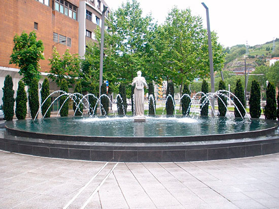 Handik gertu, Melpomene dago, Juan Crisostomo Arriaga bilbotar konpositoreari eskainitako eskultura. Enrique Barrosen eskultura iturri baten erdian dago eta, lira bati eusten dion musa jantzita erakusten du. Francisco Durrioren jatorrizko eskulturaren ondorengoa da, Arte Ederren Museoaren ondoan zuen kokalekutik kendu baitzuten, biluztasuna ezmoraltzat jotzen zuen kanpaina baten ondorioz.